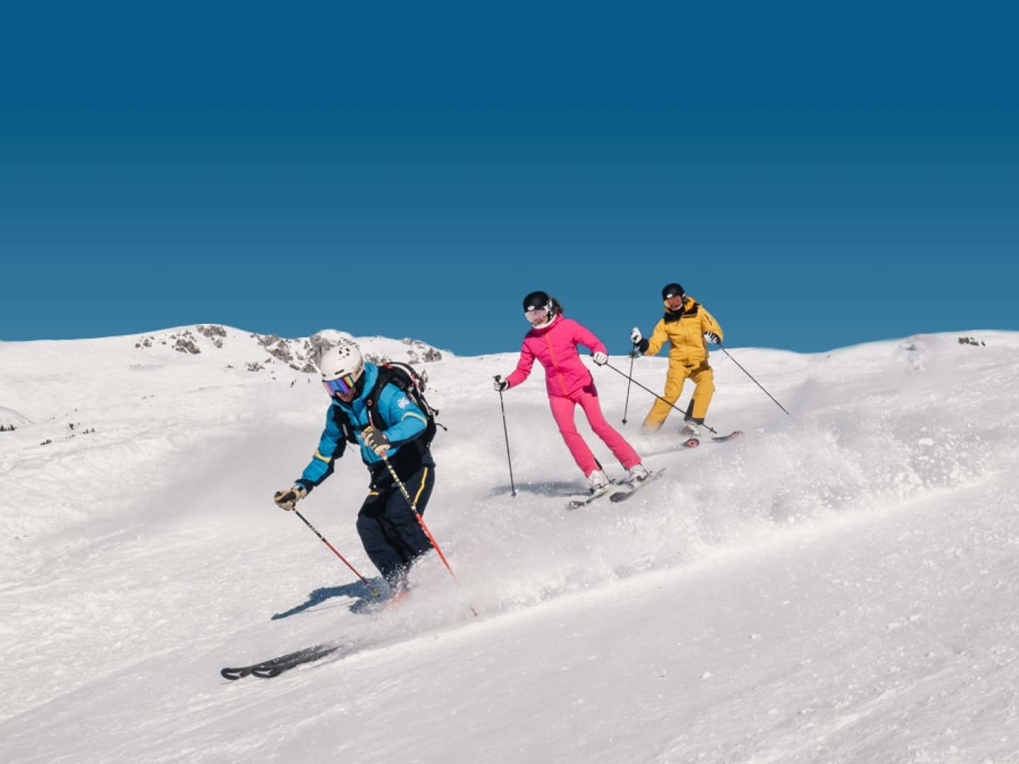 Our group ski lessons are structured according to clearly defined skill levels. Participants train in ability-matched groups, receive targeted instruction, and develop their skills safely and confidently – with a well-balanced mix of progress, technique, and enjoyment on the slopes.